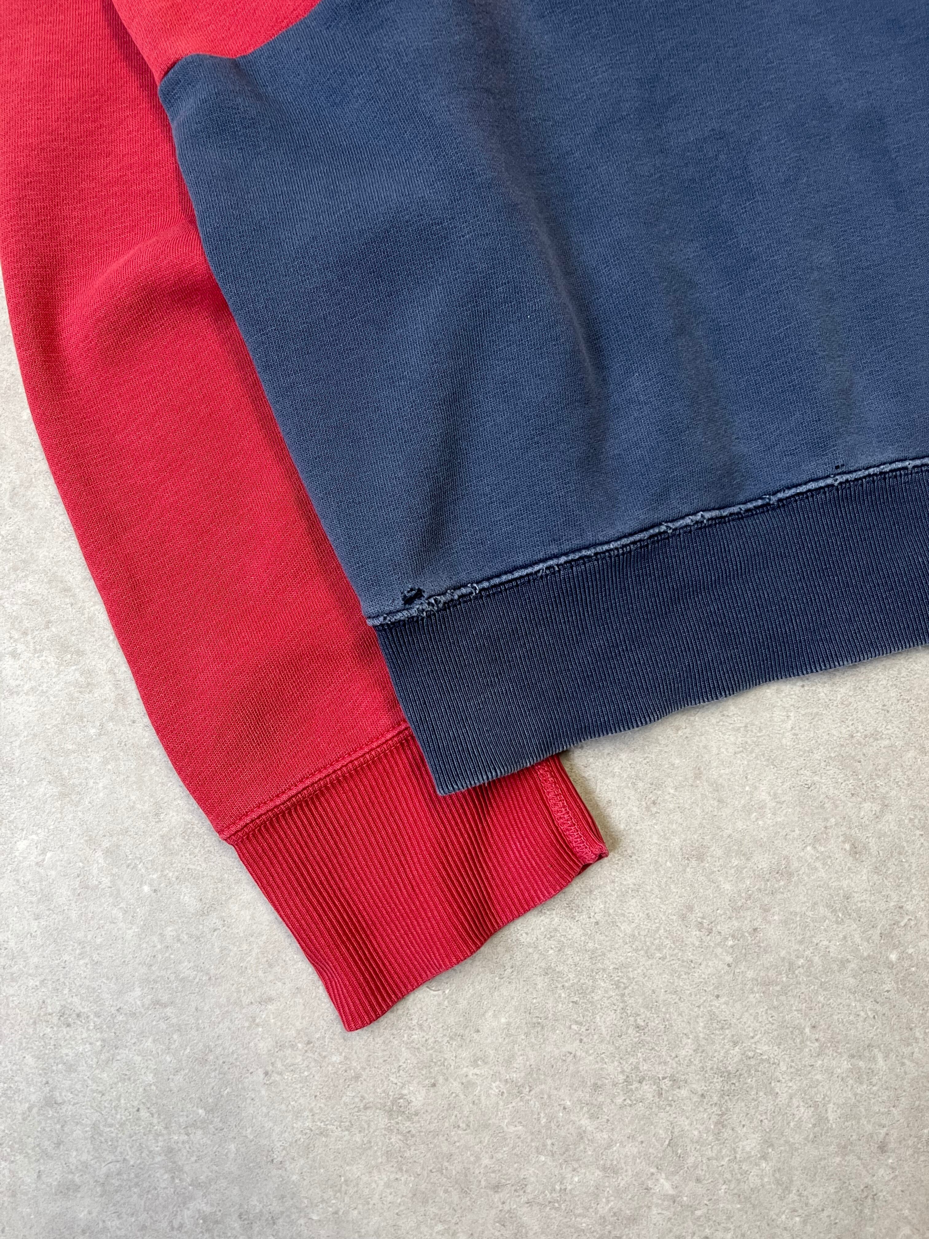【状態】腹部シミ、裾リブ・右袖ダメージあり
